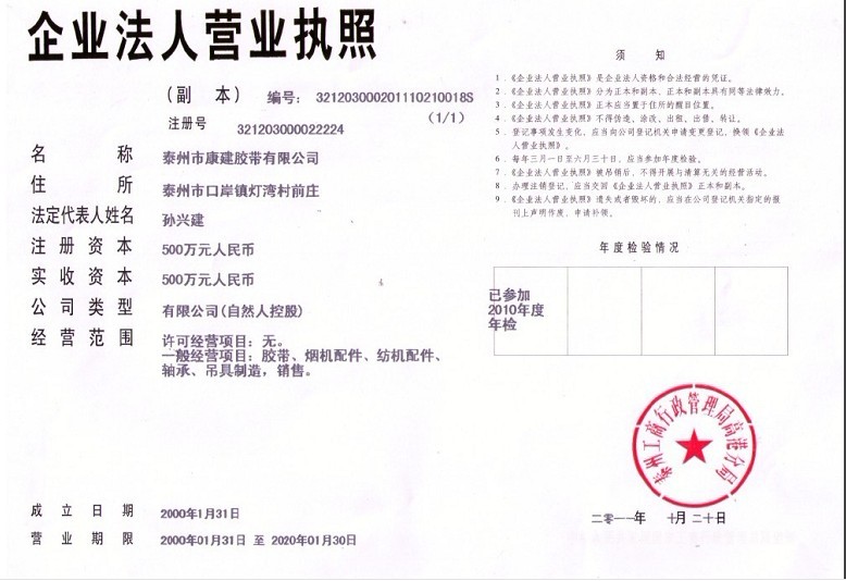 泰州市康建膠帶有限公司經過二十多年的發(fā)展